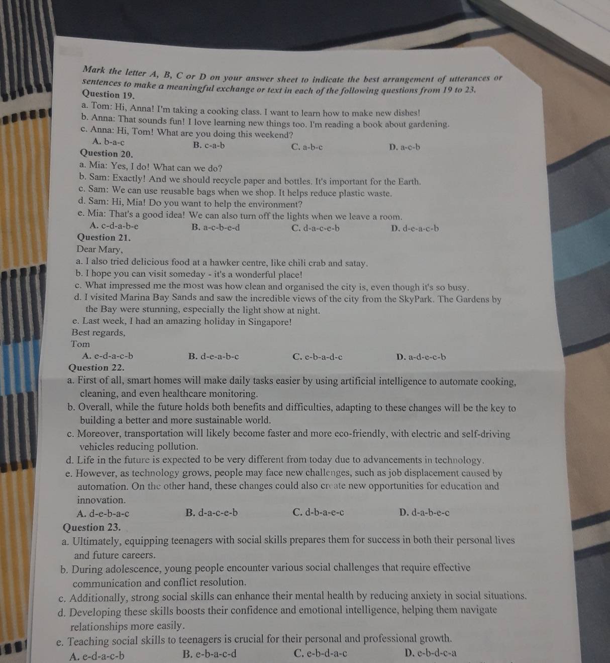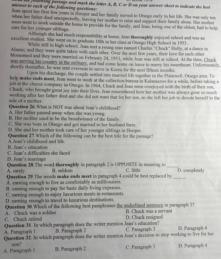 Giải quyết:Mark the letter A, B, C, or D on your answer sheet to ...