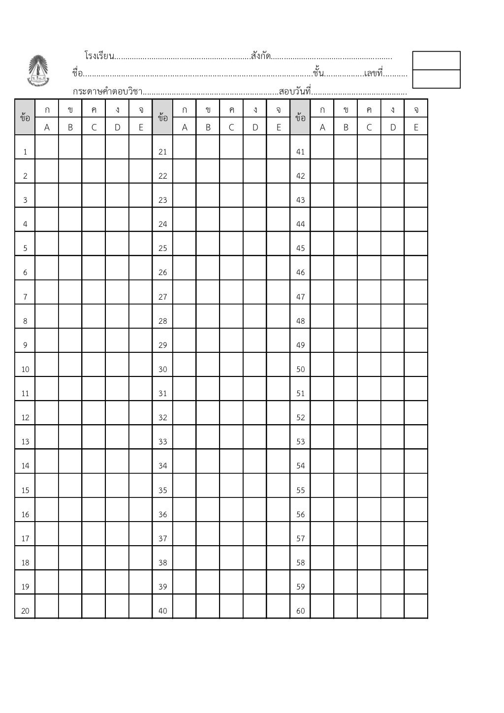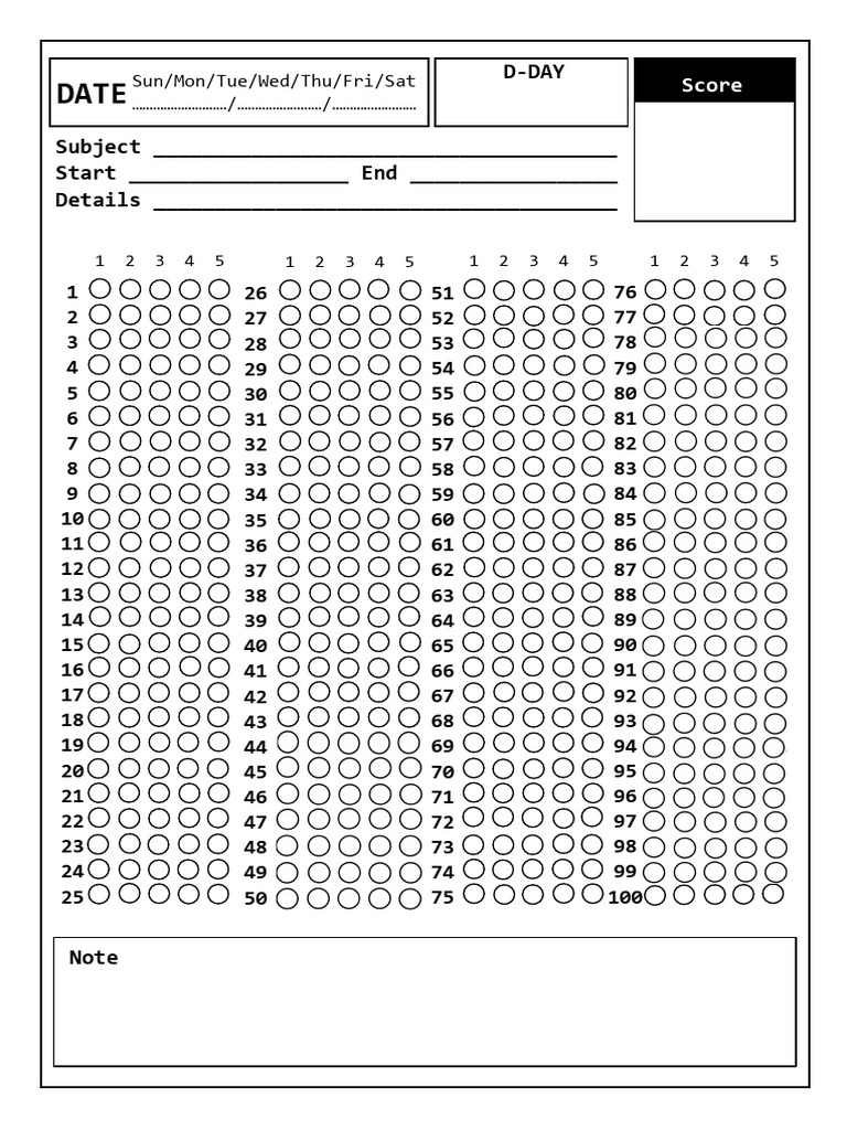 Free Printable Blank Answer Sheet Templates [1-10, 1-20, 1-30, 1-40, 1 ...