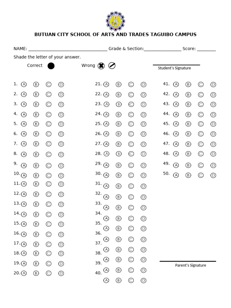 Butuan City Arts & Trades Exam Sheet | PDF