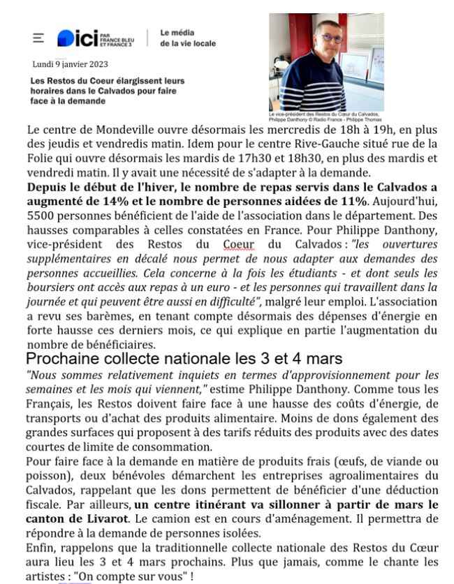 DEPUIS LE DÉBUT DE L'HIVER, LE NOMBRE DE REPAS SERVIS DANS LE CALVADOS ...