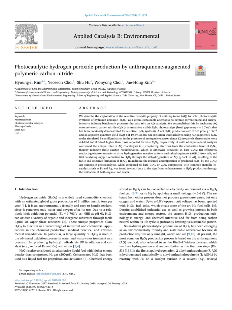 Anthraquinone and Carbon Nitride For H2O2 Production | PDF | Hydrogen ...