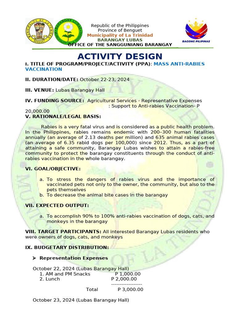 Activity Design - Anti-Rabies Vaccination | PDF | Rabies | Public Health