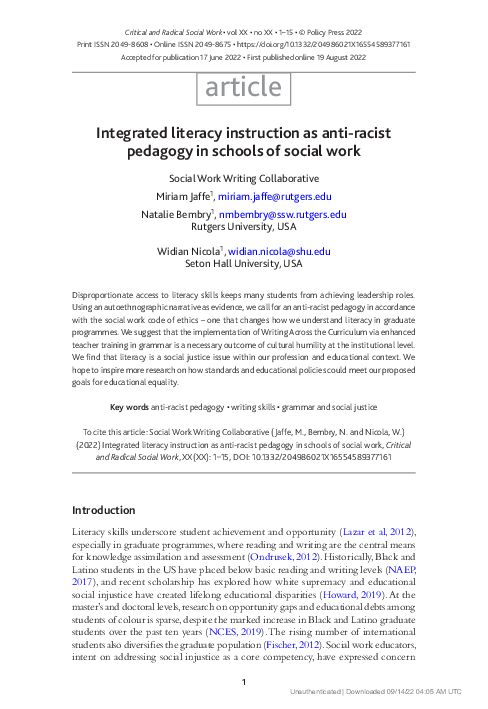 (PDF) Integrated literacy instruction as anti-racist pedagogy in ...