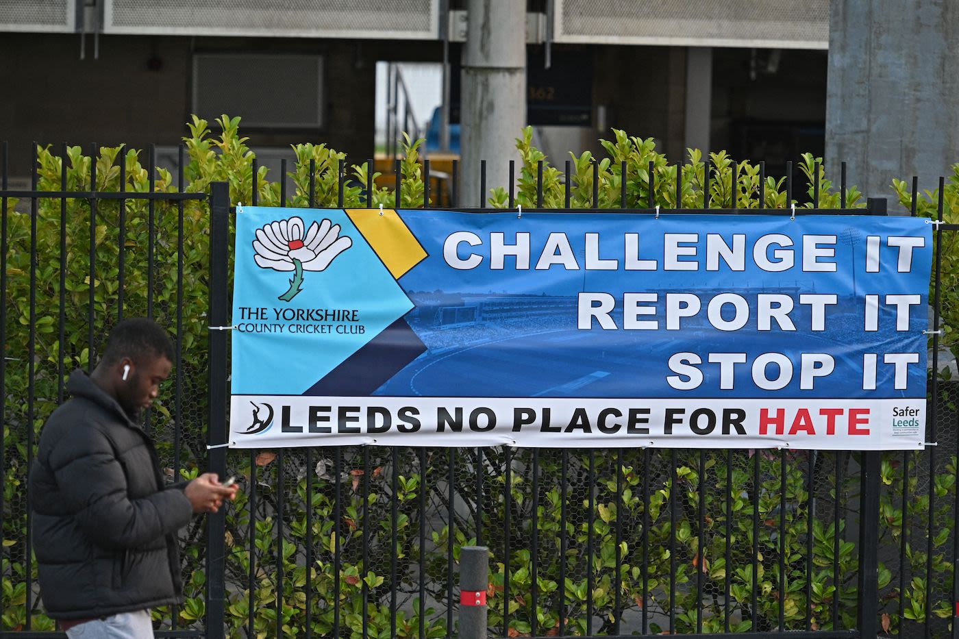 A banner with an anti-racist message | ESPNcricinfo.com