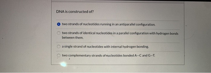 Solved DNA is constructed of? O two strands of nucleotides | Chegg.com