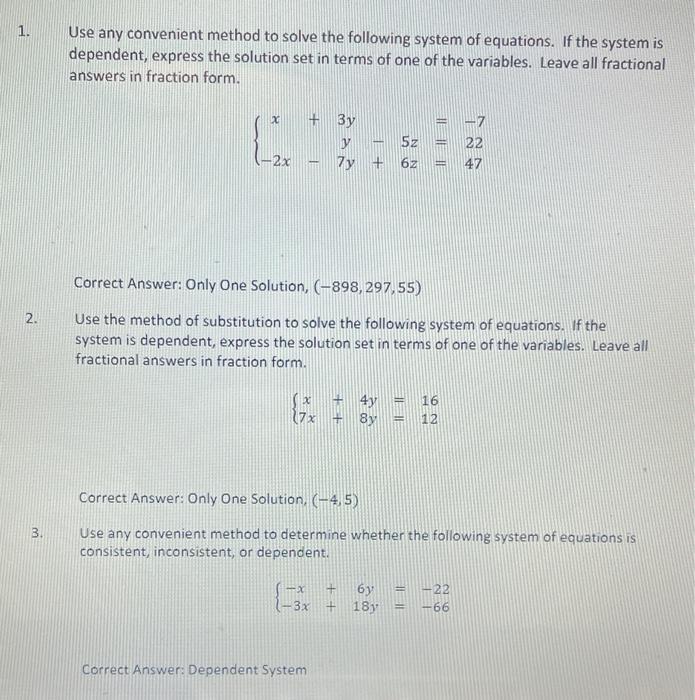 Solved 1. Solve the system of equations, use any method, | Chegg.com