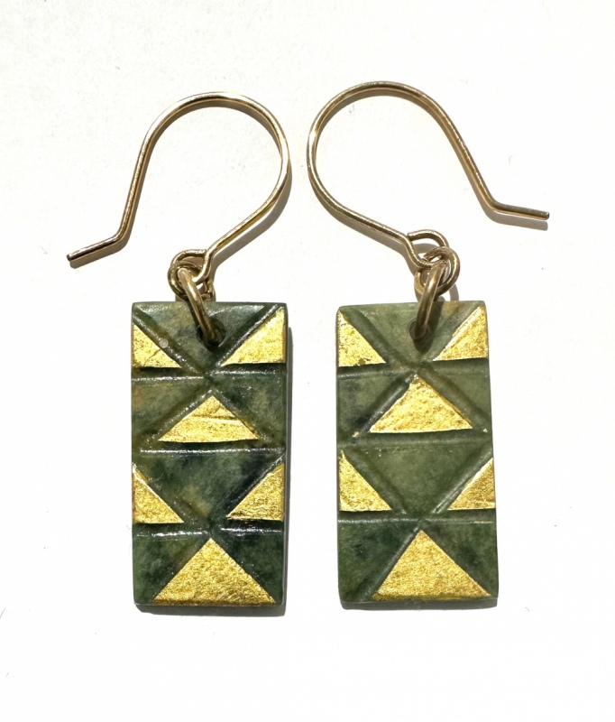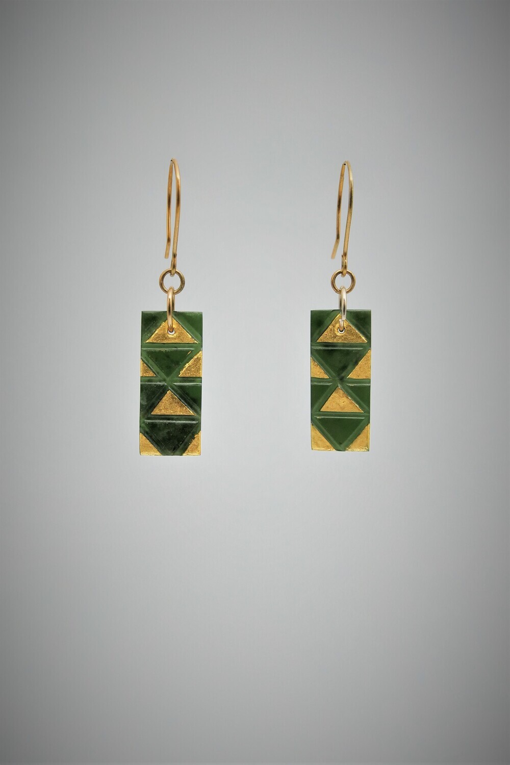 New Zealand Pounamu Earrings with Aonui Gold Accent | Mountain Jade NZ