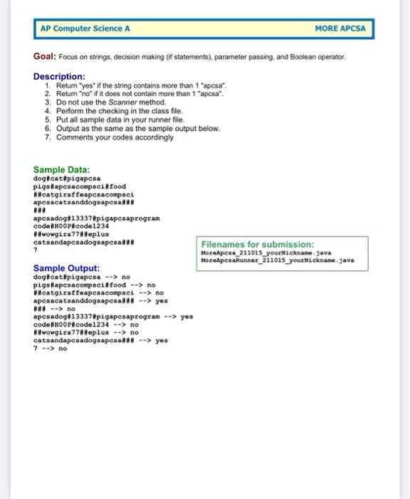 Solved AP Computer Science A MORE APCSA Goal: Focus on | Chegg.com