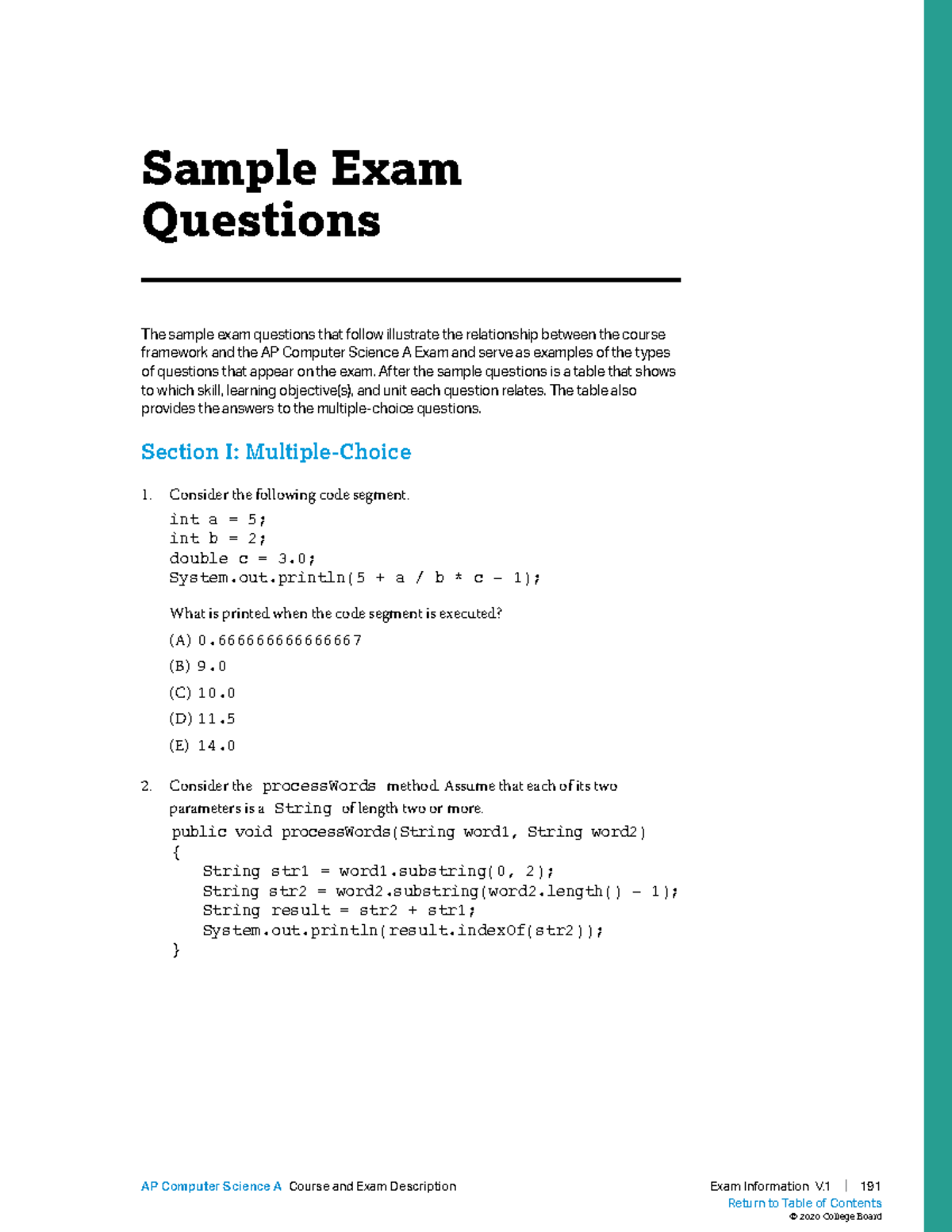 AP CSA Sample Exam Questions and Answers Guide - Studocu