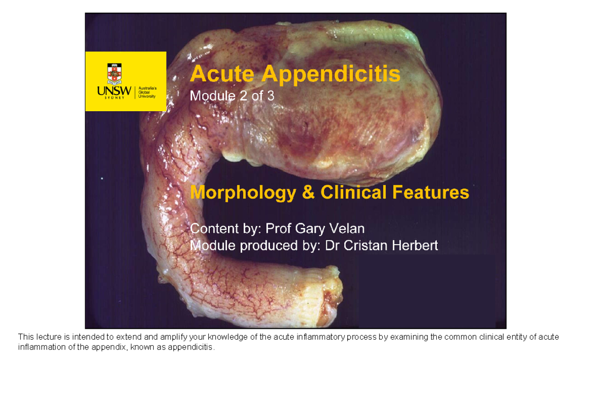 05 - Appendicitis Lecture Notes: Acute Inflammation Overview - Studocu