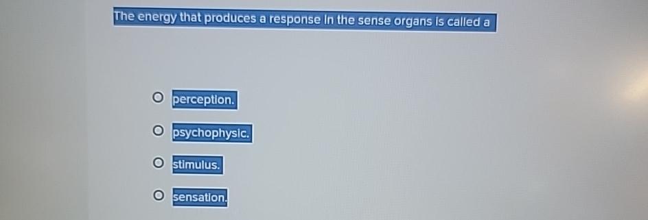 Solved The energy that produces a response in the sense | Chegg.com