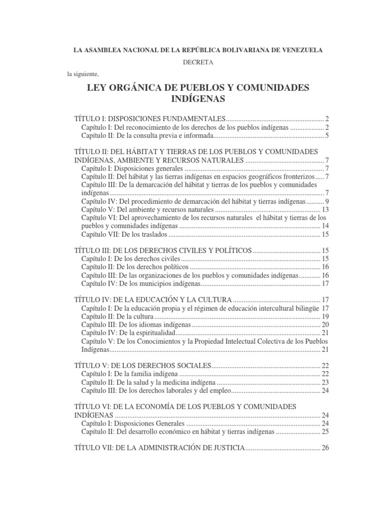 Ley de Pueblos Indígenas de Venezuela | PDF | Constitución | Venezuela