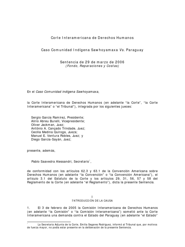 Sentencia Caso Sawhoyamaxa Vs Paraguay | PDF | Paraguay | Ley procesal