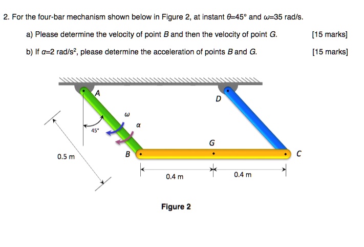 SOLVED: 2.For the four-bar mechanism shown below in Figure 2,at instant ...