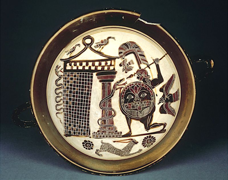 Greek Art: Laconian Cup With Black Figures Representing Cadmos Fighting ...