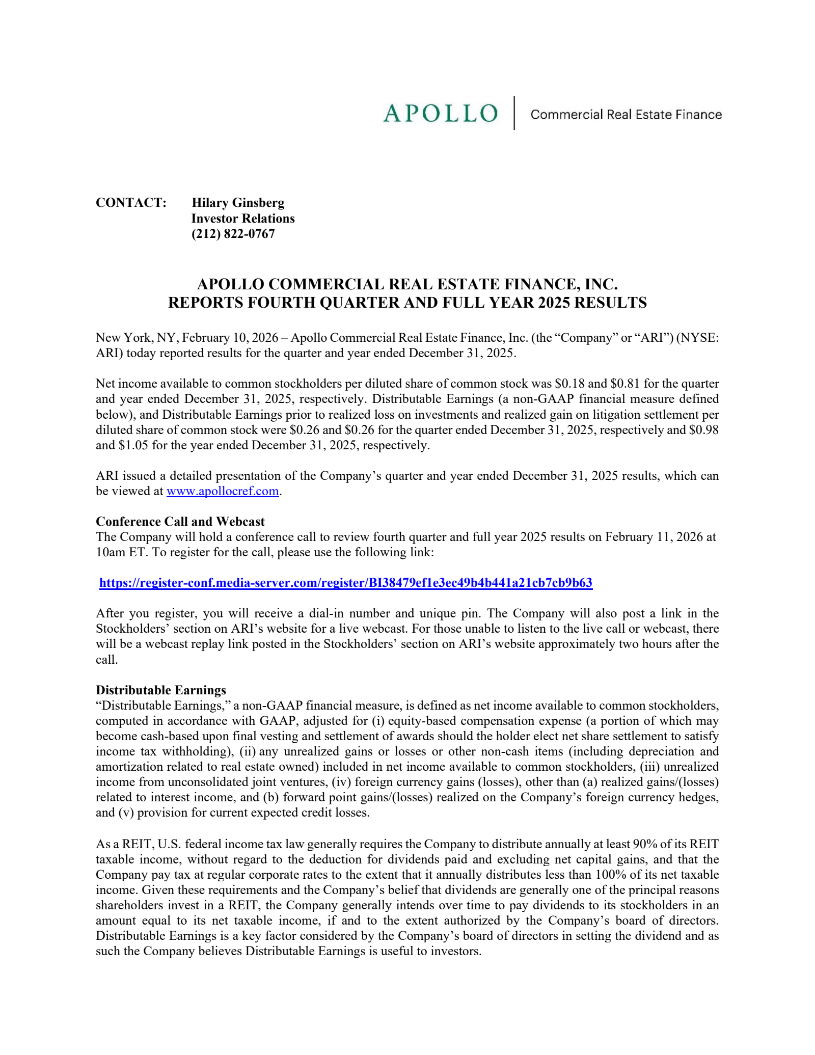 ARI Q4 2025 Earnings Report on 2/10/2026