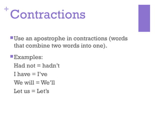 Apostrophes Uses Contractions and Letters Apostrophes are used
