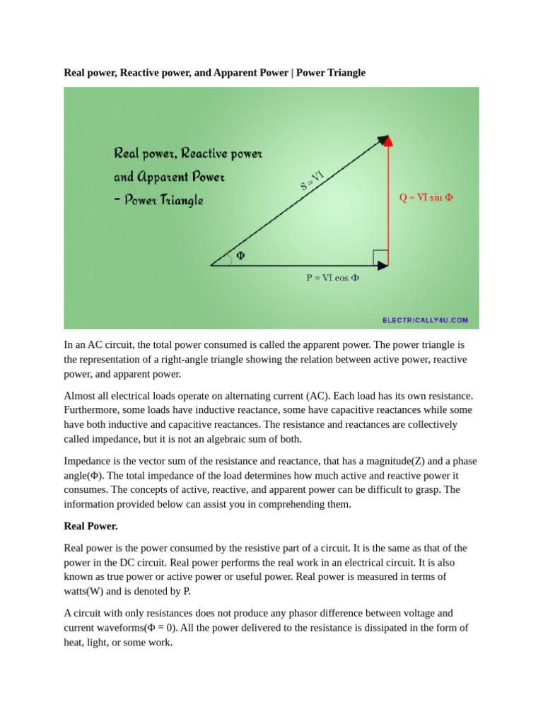Real, Reactive, and Apparent Power Explained | PDF | Ac Power ...