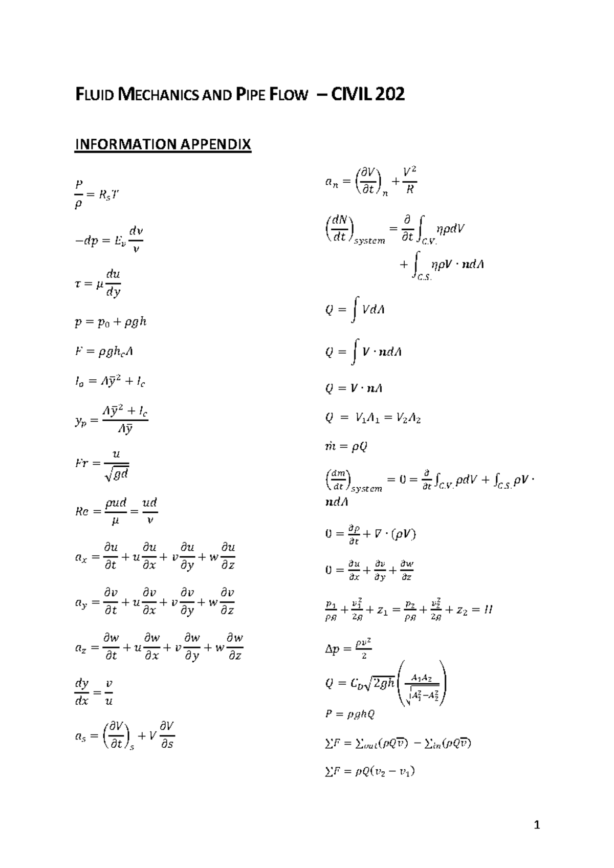 Fluid Mechanics and Pipe Flow: Civil 202 Info Appendix - Studocu