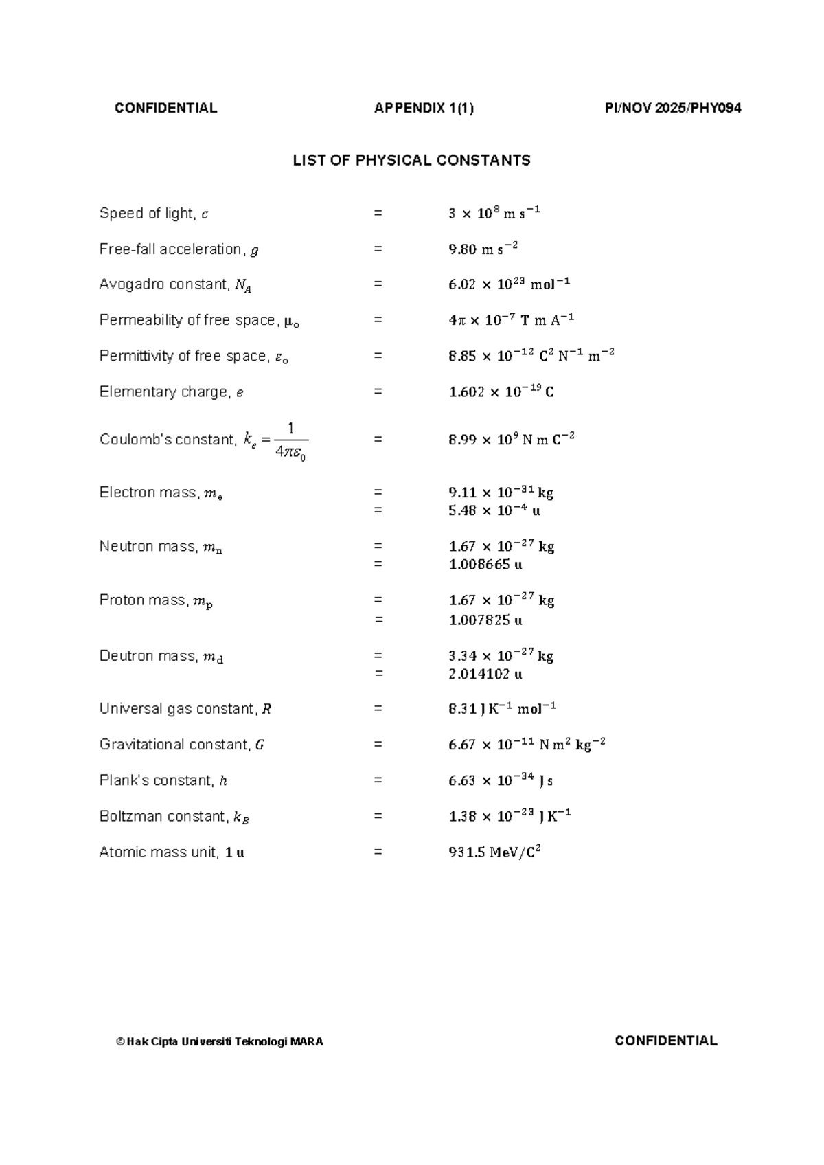 Appendix 1: List of Physical Constants for PHY094 NOV2025 - Studocu