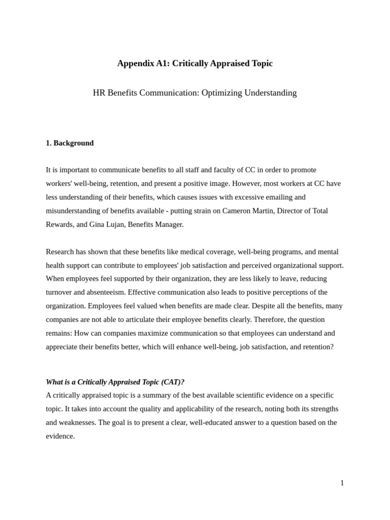Appendix A1 CAT Final Copy (Critically Appraised Topic - Scientific ...