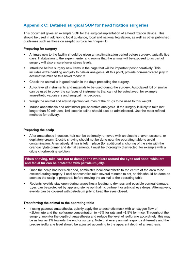 Appendix C - Refinements To Rodent Head Fixation and Fluidfood Control ...