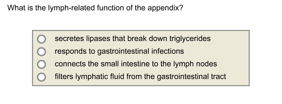 Solved What is the lymph-related function of the appendix? O | Chegg.com