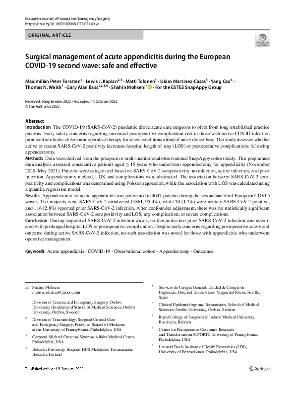 (PDF) Management of Acute Appendicitis by an Acute Care Surgery Service ...