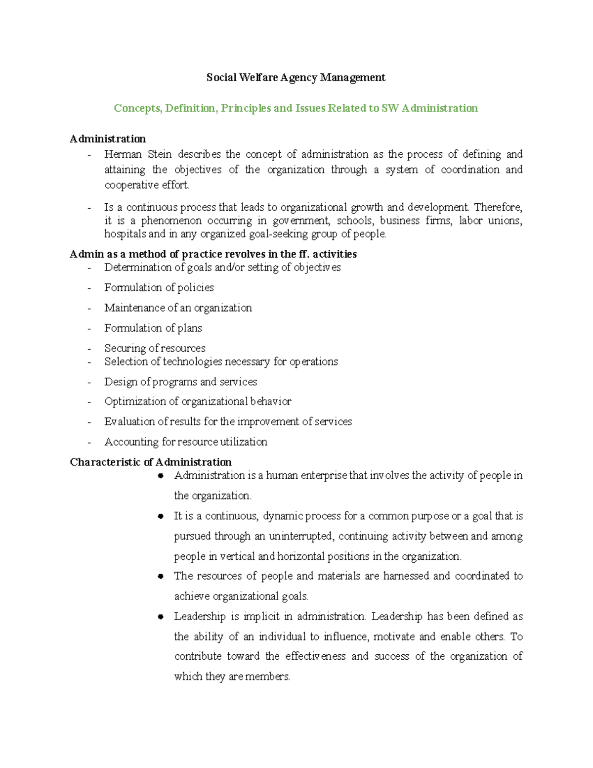 SWWP 3 - Final Exam Notes on Social Welfare Agency Management - Studocu