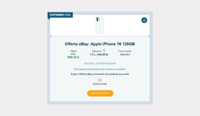 Il miglior Coupon eBay del giorno: Apple iPhone 16 128GB a soli 699 euro