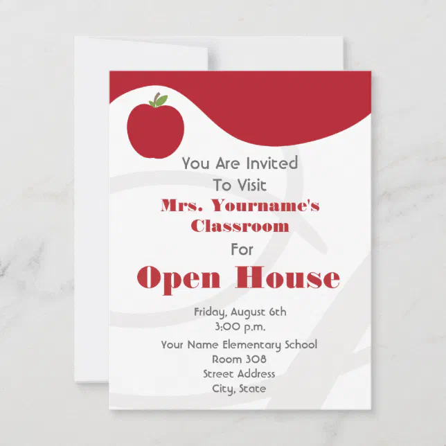 Classroom / School Open House- Red Apple Invitation | Zazzle