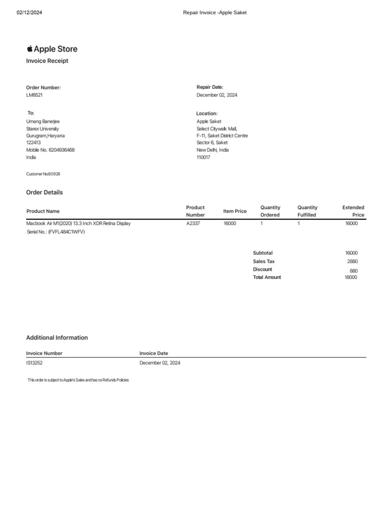 Understanding Your Apple Repair Invoice: Breakdown & Details | Course Hero