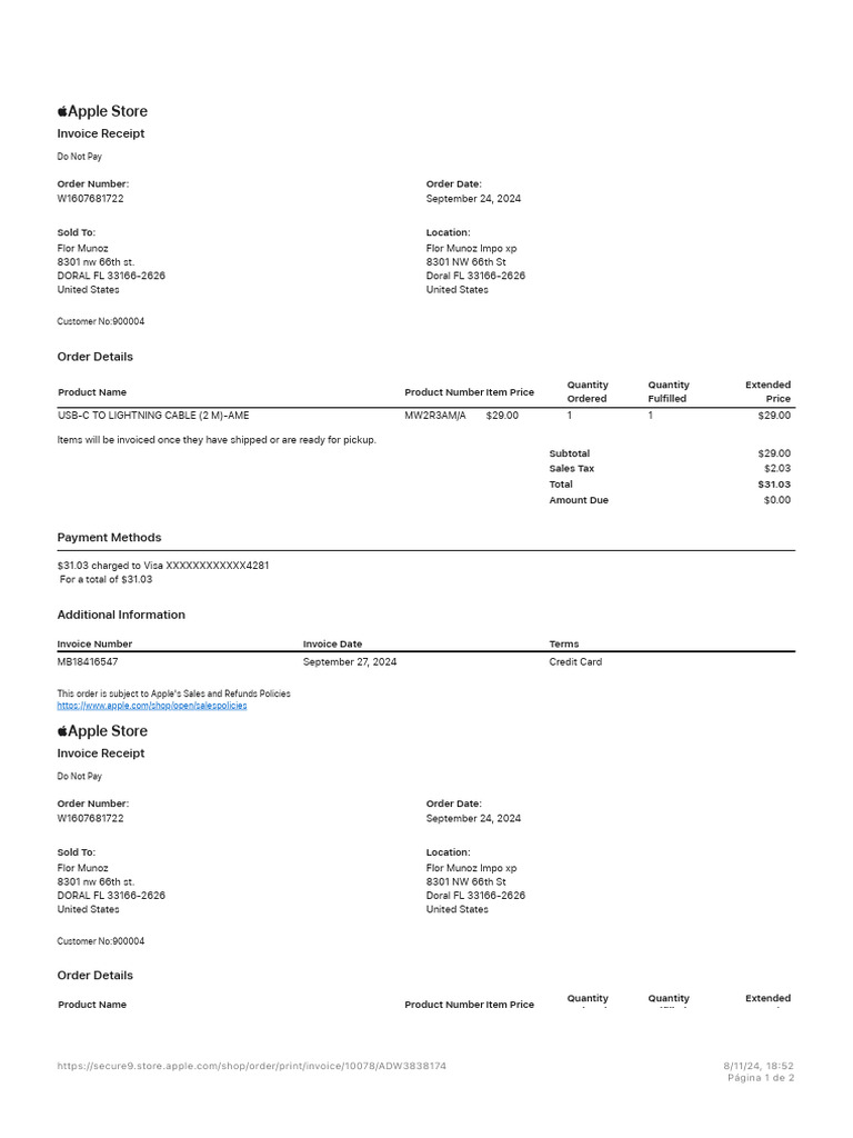 Apple Store Invoice Receipt - Order Details, Payment Methods, | Course Hero