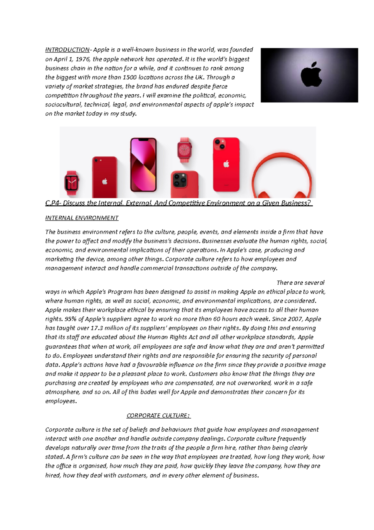 Unit 1 Assignment 2 - Analyzing Apple's Business Environment - Studocu