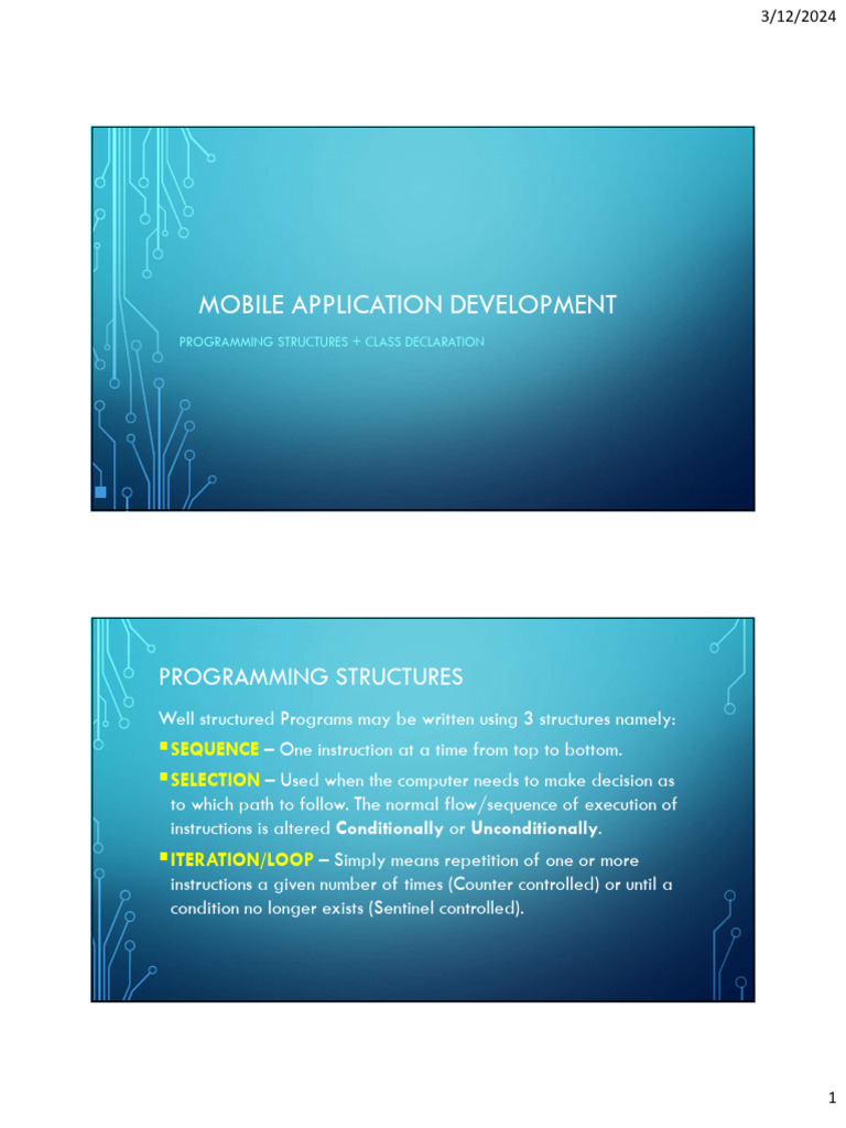 MOBILE APPLICATION DEVELOPMENT - Program Structures + Classes and ...