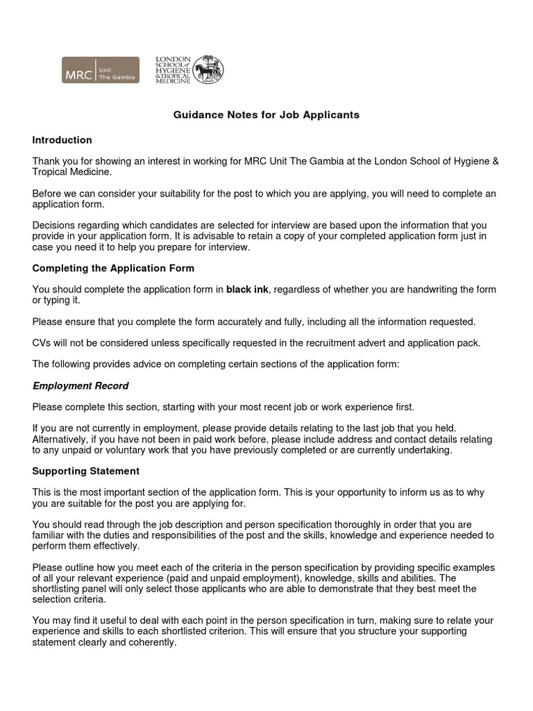 Application Form Guidance Notes For Applicants | PDF | Recruitment ...
