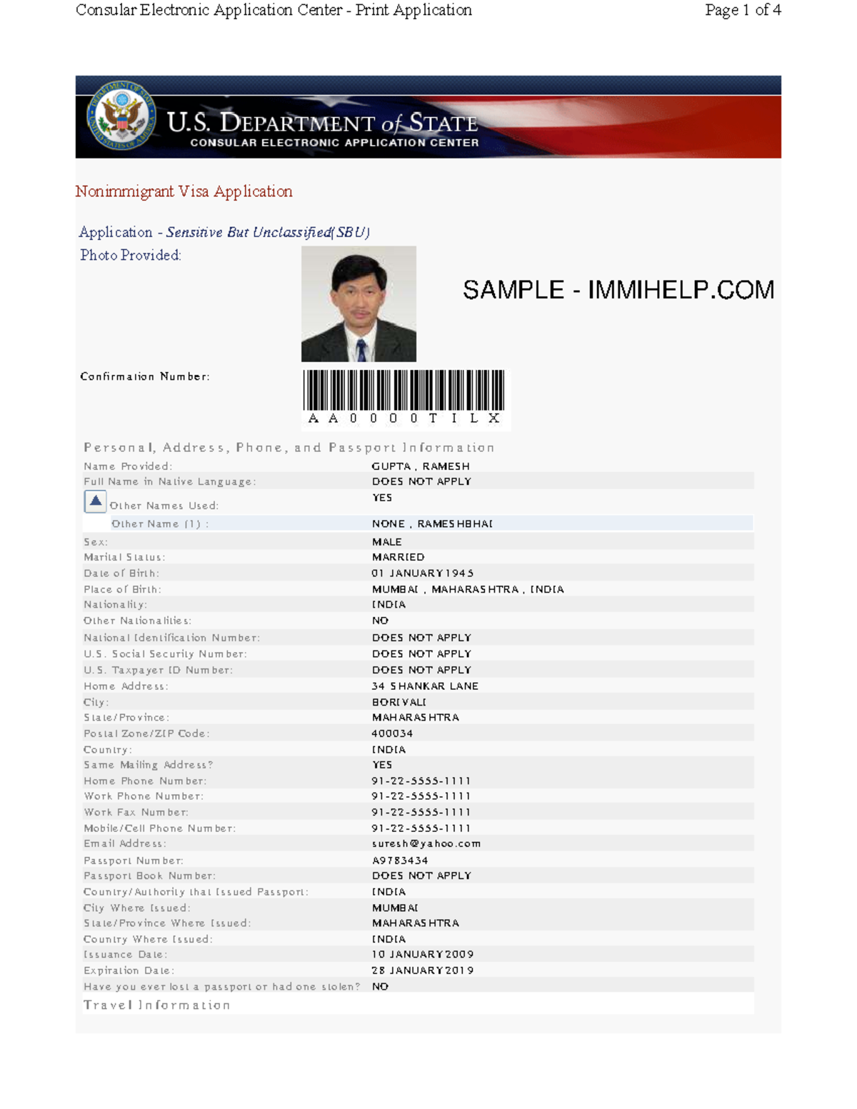 Sample DS-160 Form for U.S. Visa Application (Nonimmigrant) - Studocu