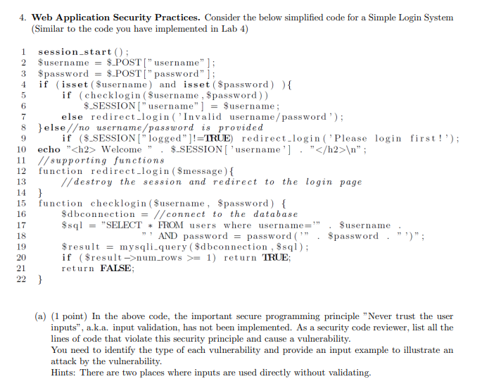Solved 4. Web Application Security Practices. Consider the | Chegg.com