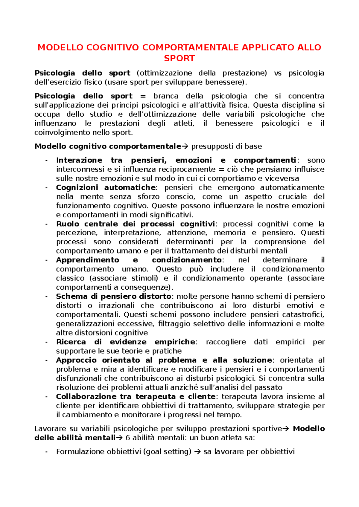 Modello Cognitivo Comportamentale Applicato ALLO Sport - MODELLO ...