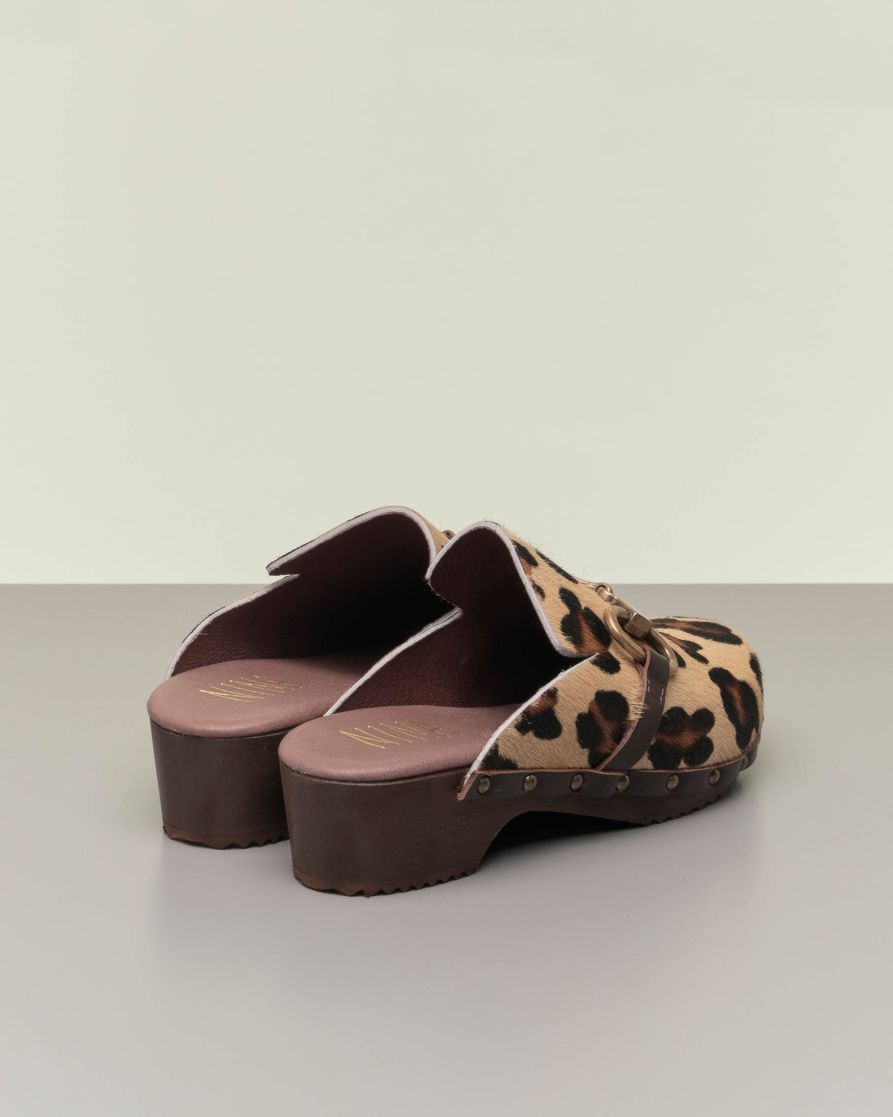 Zoccoli con tomaia in cavallino a fantasia leopardata con morsetto ...