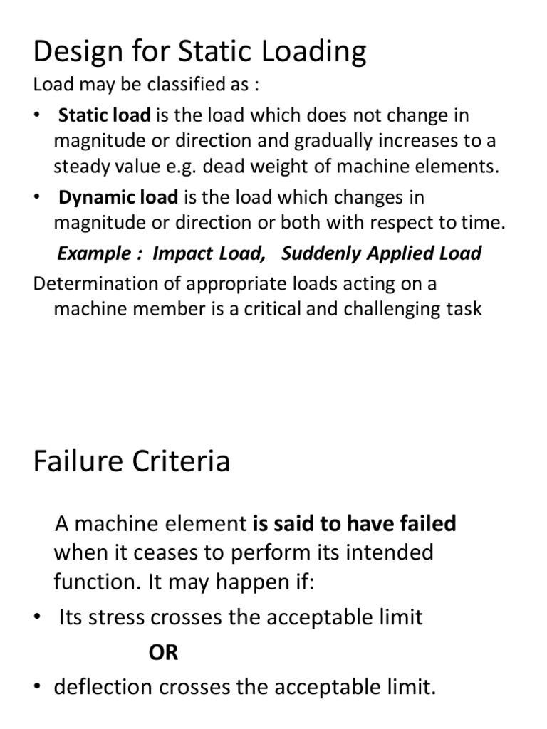 Design For Static Loading: Example: Impact Load, Suddenly Applied Load ...