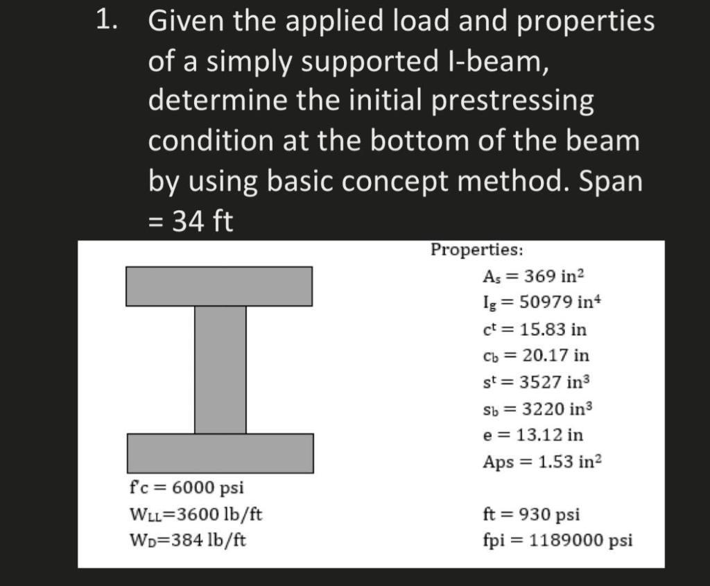 Solved Given the applied load and properties of a simply | Chegg.com