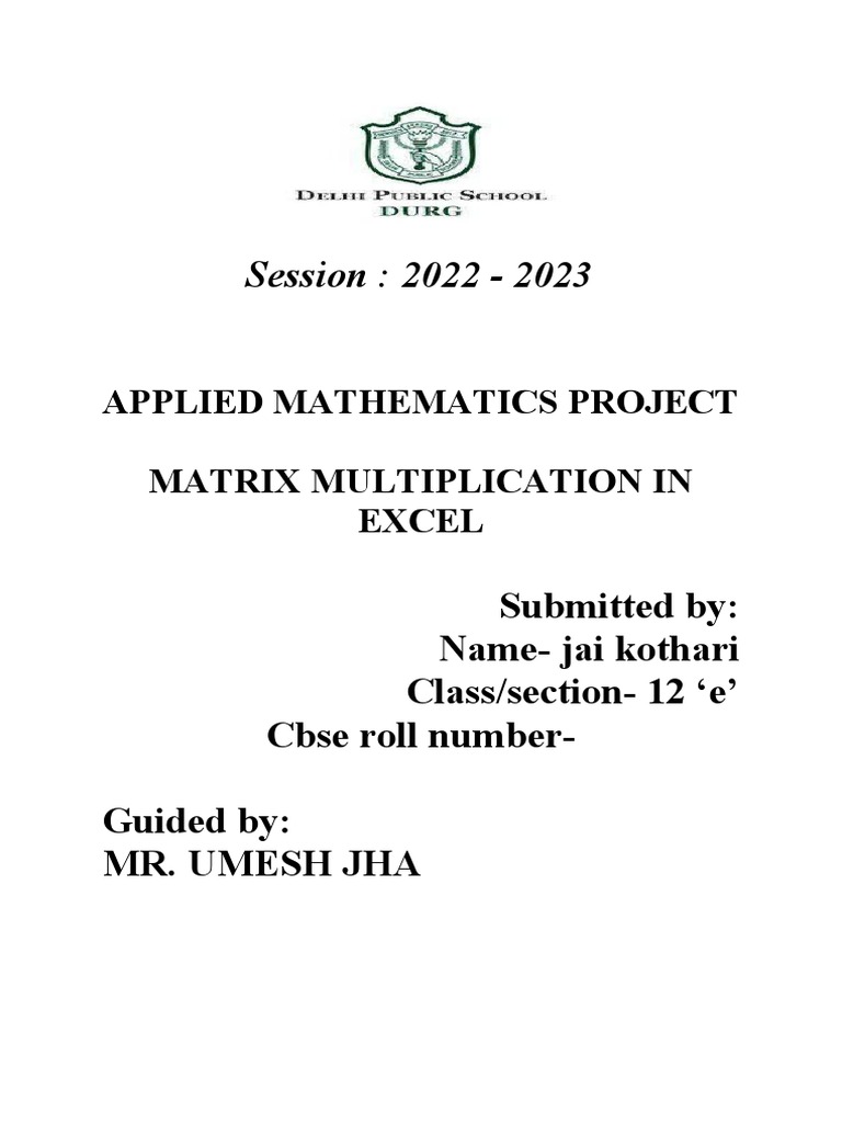 Class 12 Applied Maths Project Overview | PDF | Matrix (Mathematics ...