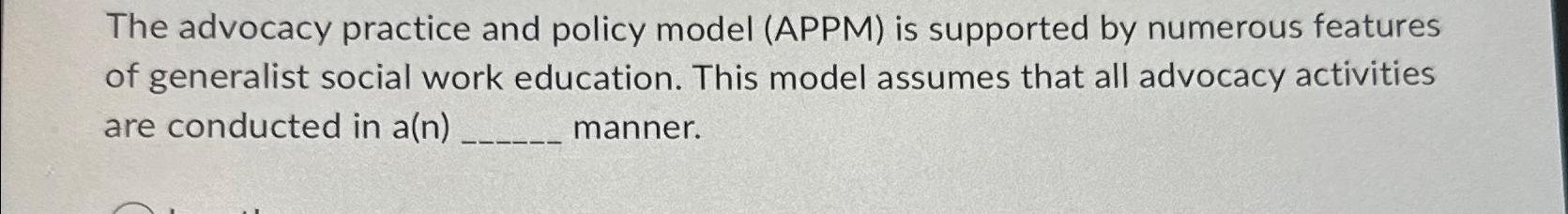Solved The advocacy practice and policy model (APPM) is | Chegg.com