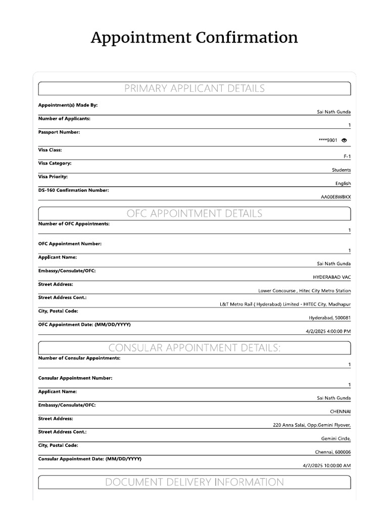 Appointment Confirmation Sample | PDF | Travel Visa