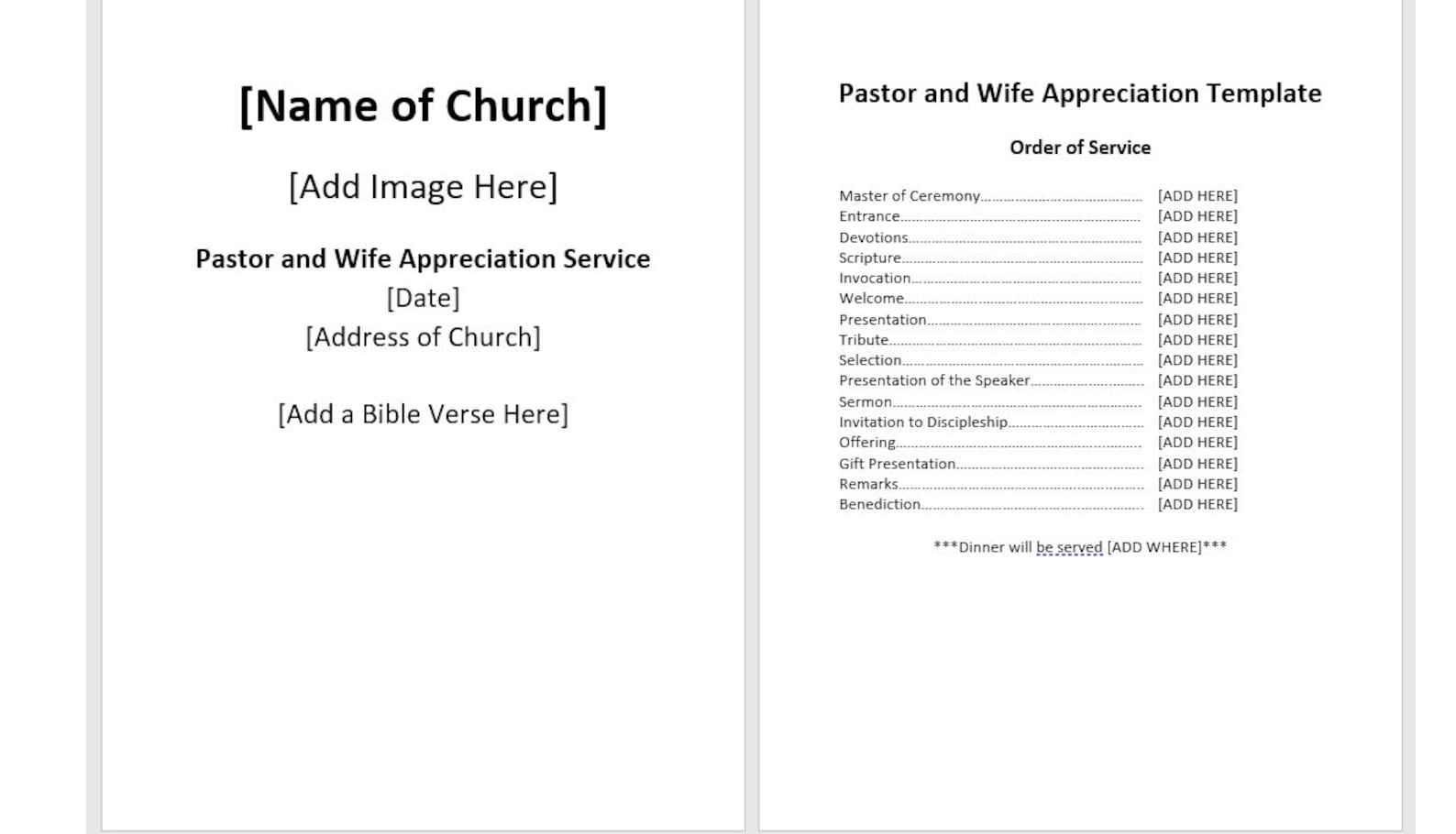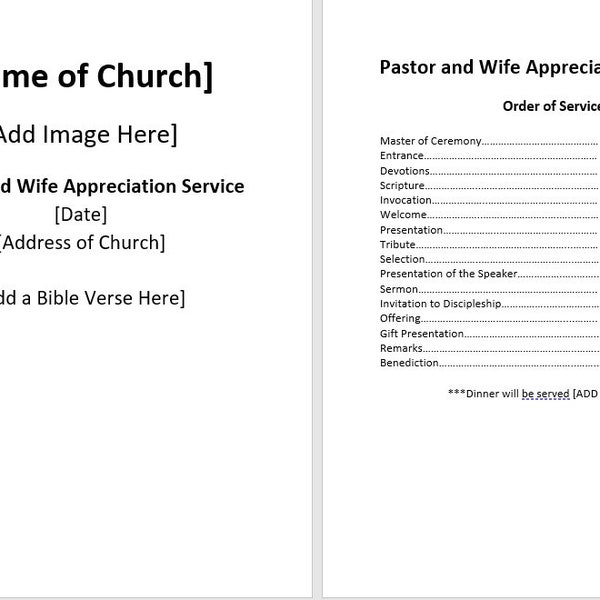 Sample Church Pastor & Wife Appreciation Program - Editable Template - Etsy