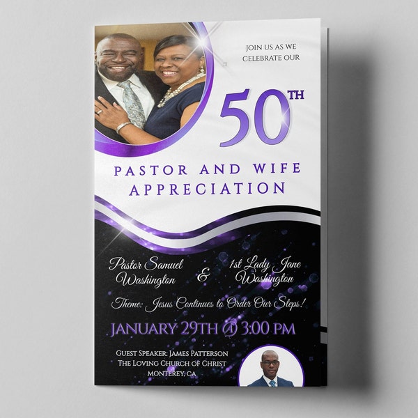 Pastor & Wife Church Anniversary Program Booklet Template Editable in ...