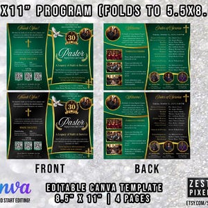 Pastor Appreciation Program Template Set for Canva, Green Church ...