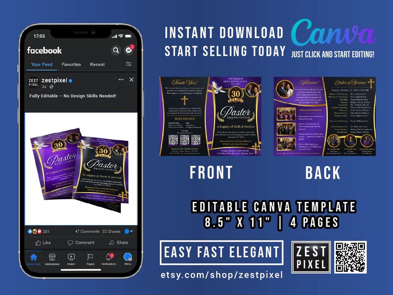Pastor Appreciation Program Template | Editable Canva Brochure (PDF) - Etsy