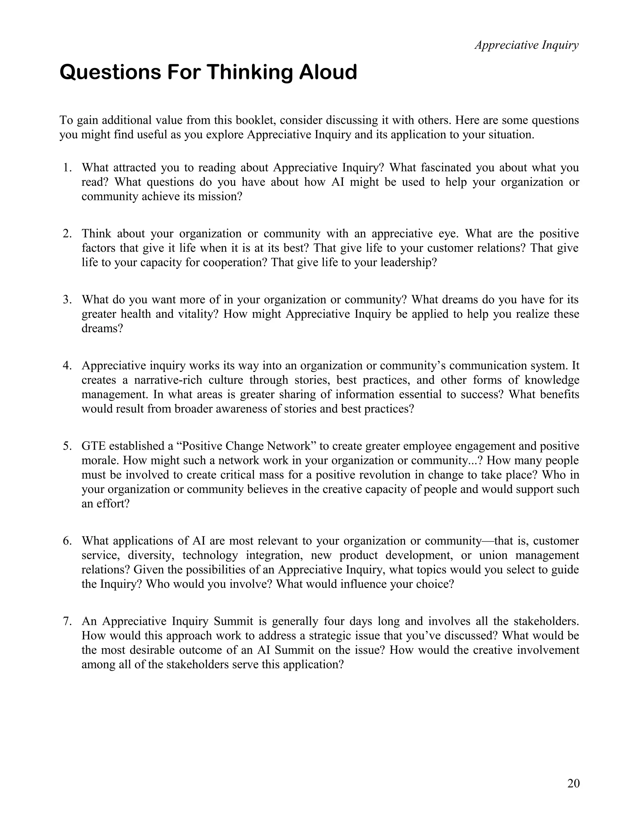 Appreciative Inquiry - Asking Powerful Questions - 110904 | PDF